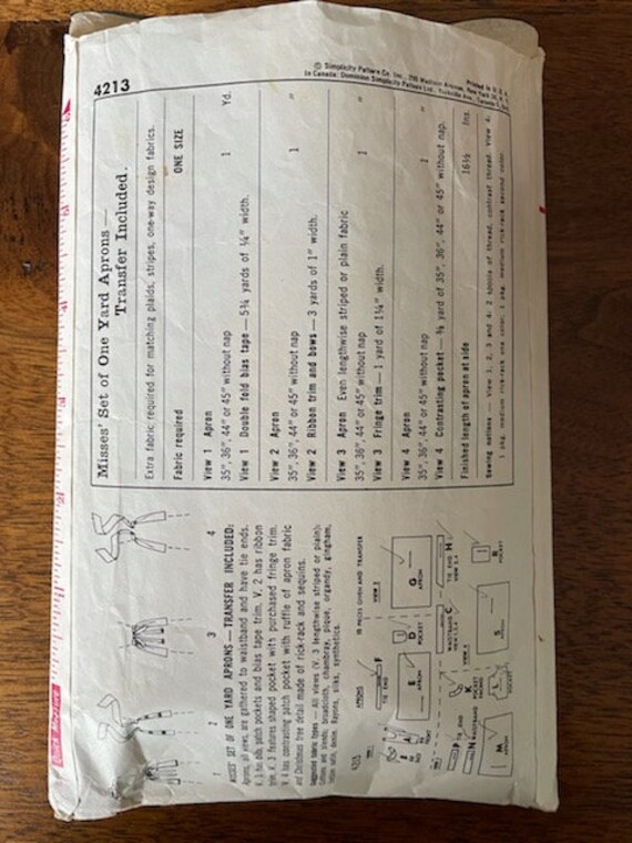 Vintage Simplicity 4123 Apron Sewing Pattern Etsy