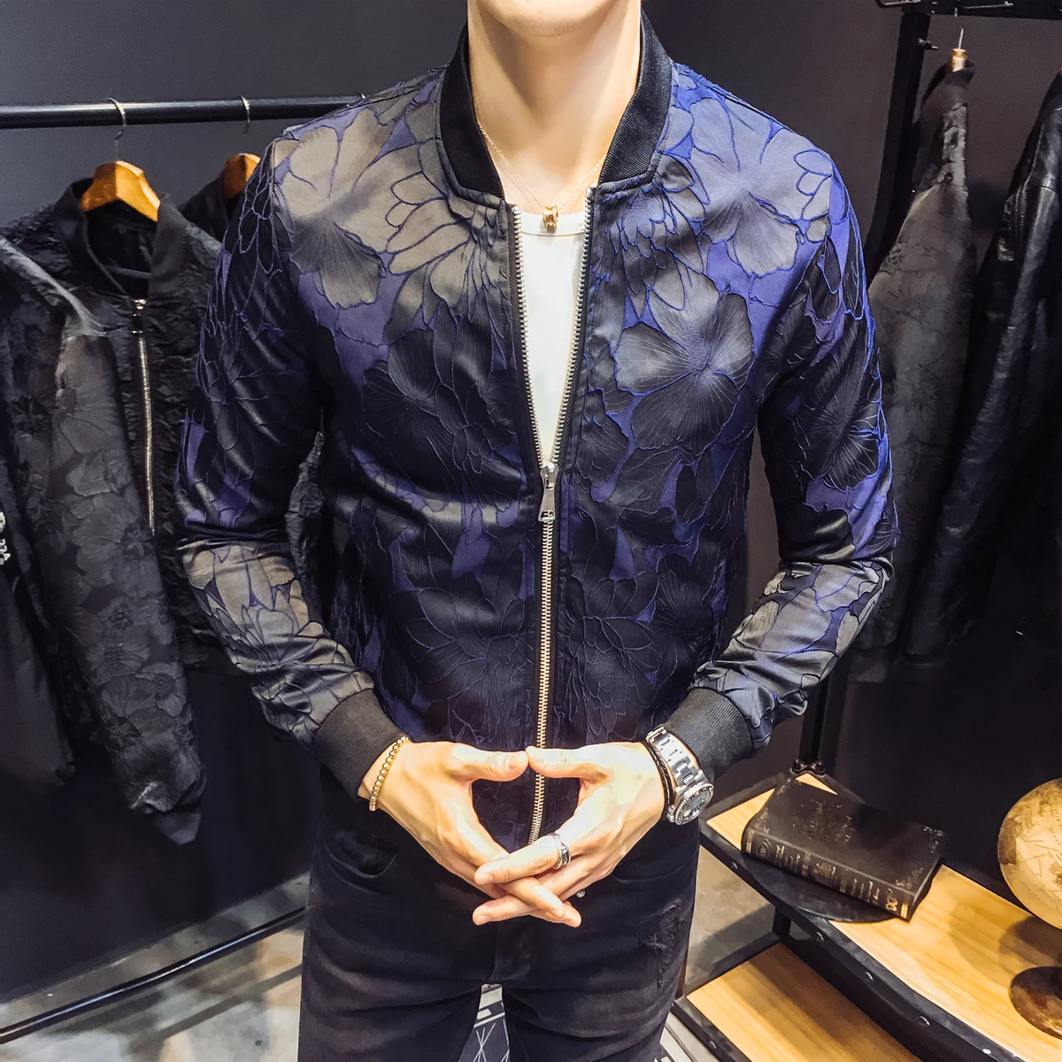 Designer Jacket Patterns Blue Black New Autumn Patty Baroque Bomber Jackets Jacquard Club Outfit Men Slim Fit 4xl Jackets Aliexpress